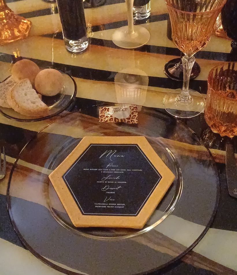 I dettagli erano un capolavoro di stile e cura: divani decorati con cuscini a tema, tovaglioli e menù esagonali che richiamavano la maestosità della tigre.