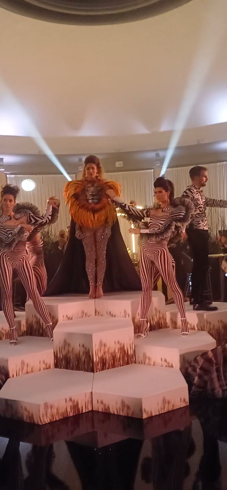 Entrando nella sala, sembrava di essere catapultati in un mondo selvaggio e affascinante: ballerini in abiti animalier danzavano su pedane, muovendosi con una grazia quasi ipnotica, accompagnati da una musica che pulsava di energia.